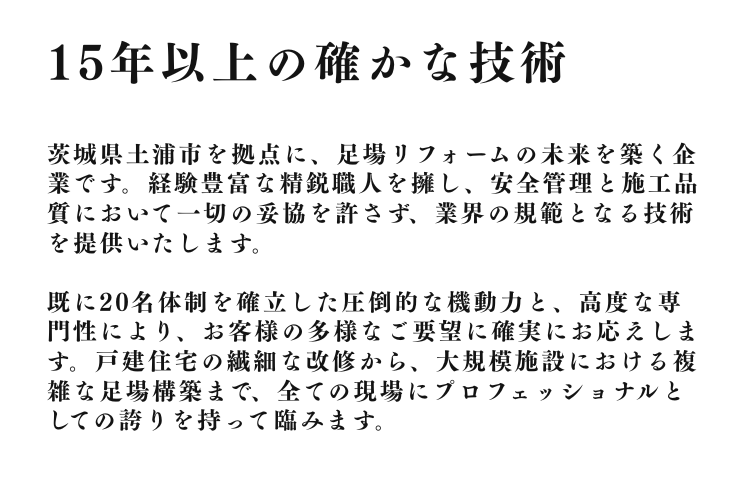 「足場・仮設工事」は、全ての「建設」の基盤を支え、